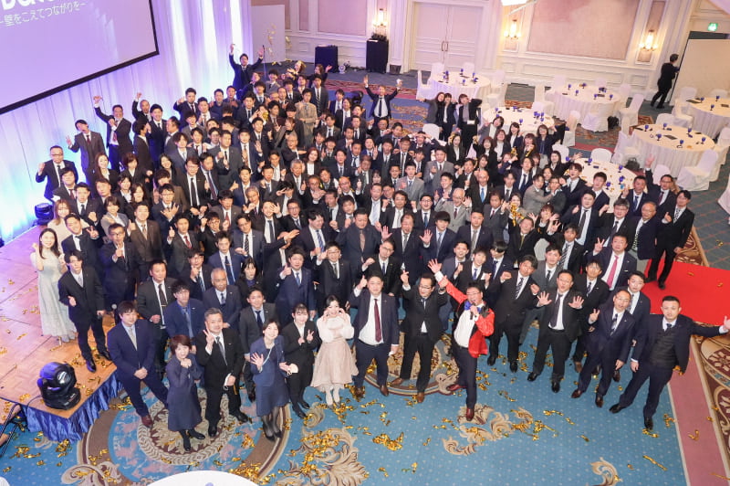 全社員が感謝と承認の文化を醸成する機会として、年に1回、1泊2日で一堂に会し、決算報告、中期/短期の事業計画共有、年間表彰、懇親会などを行います。