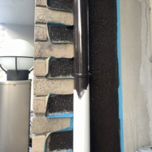 既存色の白色からこげ茶への塗り替えとなりましたので、塗り残しや色ムラが少しでもあると目立ってしまいます。目に見える付帯箇所でけではなく、飾りレンガと外壁の境など細かく狭い箇所も隅々まで塗り残しが無いようしっかりと塗布しました。