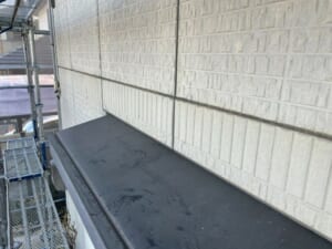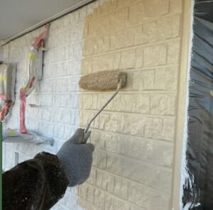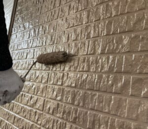 窯業系サイディングだったため、凹凸が大きく後ダレの無いよう注意しながら作業を行いました。下塗り作業後、ダレが無いか乾く前に足場をまわり塗った個所を再確認しました。ダレがあった場合はローラーですぐに直します。またカッターナイフで削ることもあります。そうすることで凹凸の大きな窯業系サイディングを見栄え良く塗装することが出来ます。