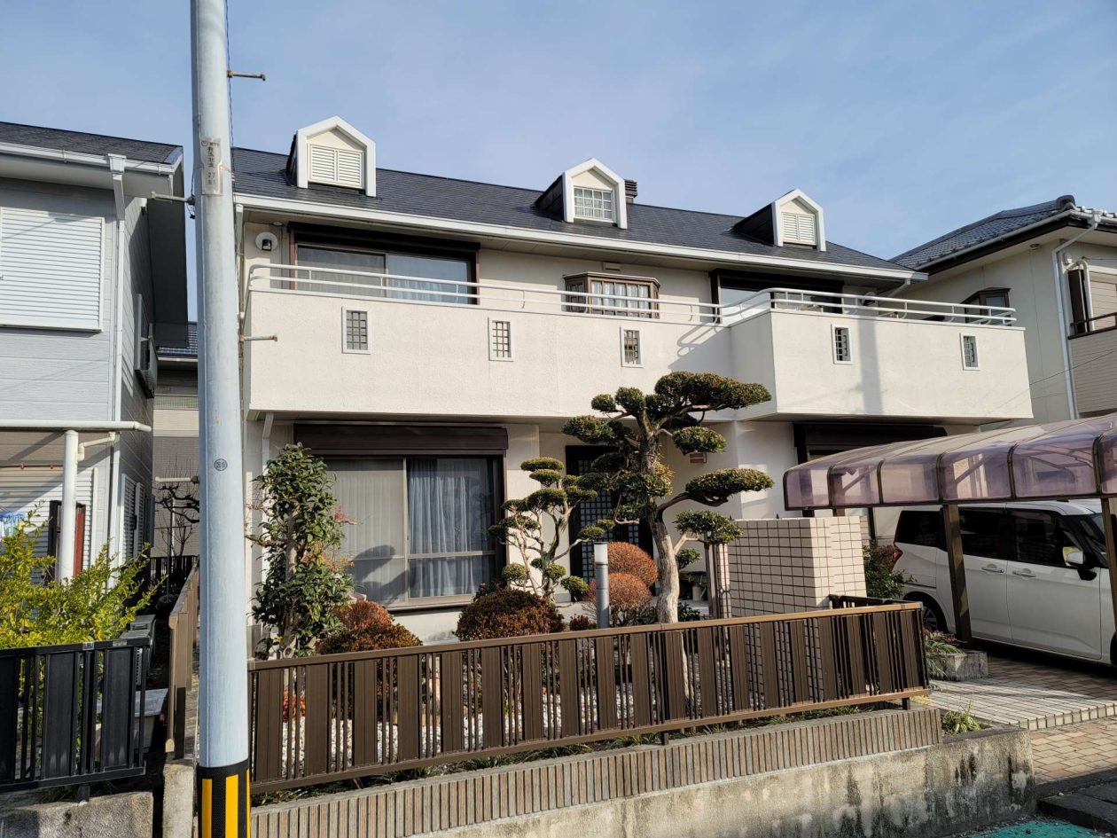 築32年のお住まいで今回は3回目の外壁・屋根塗装をお任せ頂きました。前回、前々回は建てられたパナホームさんで塗装。3回目の時期を感じてはいながら一人暮らしの為どうしようか迷まれていた。屋根塗装リフォームの傷み、外壁のチョーキングを特に気されていた所、近隣現場挨拶に来た営業担当者に話を聞いてみようと声をかけていだだきご縁を頂く形となりました。