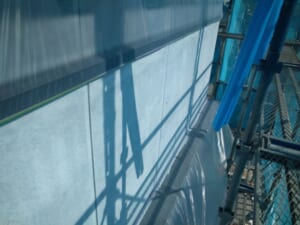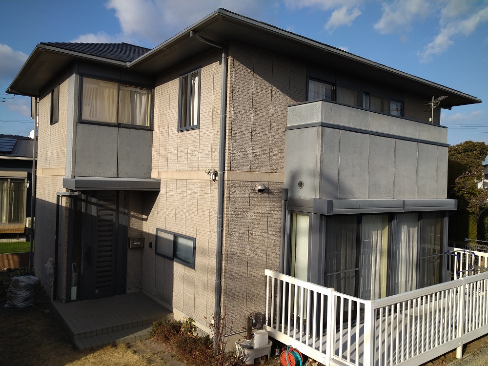 築20年が経過されている外壁材でしたので、劣化状態が4面ごとに違いました。傷みが進行していた南面は外壁の下塗りをムラなく仕上げました。今後長く塗装が持つ為に一番大切な工程になりますので、チェックも2重に行い、塗りムラなく仕上げました。