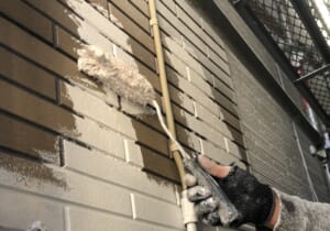 中塗り・上塗りの工程へ進んだ際に色ムラが出ない為に、塗り残しが無いか細かくチェックしながら外壁下塗り作業を進めて行きました。家の中からは見えない外壁部分ですが、一切妥協せず、しっかりと塗料を塗布しました。