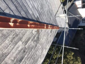 屋根の笠木部分は全面的にサビがある状態でしたので洗浄した後に、サンドペーパーを用いて丁寧に全部のサビを落とし、その上からサビ止め処理をさせて頂きました。下処理で丁寧にサビ落としをした事によって、今後は綺麗な状態が長く続くと思います。