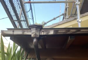 お住まいの既存雨樋が経年劣化で継手部分からの水漏れが起きていました。部分交換をほどこすのにも既存の雨樋が廃盤商品だった為代用品を探しました。代用品を使った為、加工・塗装・処理に苦労しましたが、しっかりと丁寧に仕上げました。