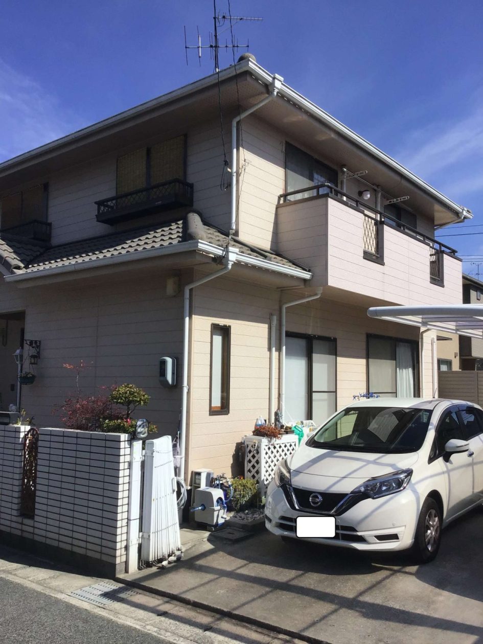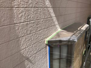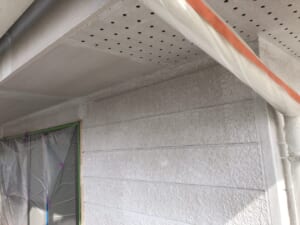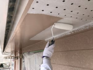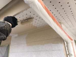 外壁塗装工事をするにあたって、下地調整は非常に重要となります。三和ペイントで使用している下塗りには下地再生機能があるので、しっかりと厚みをつけて塗り込みました。また、下塗りの段階で仕上げるような気持ちで丁寧に塗り込みました。そうすることで塗りムラを最小限に抑えることが出来ます。