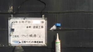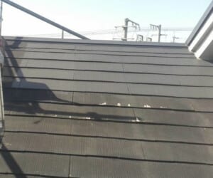 屋根塗装前に屋根の状態を確認すると、クラック(ひび割れ)がありました。この状態を放置すると、雨水が侵入し雨漏れを引き起こしてしまいます。コーキングを使用しクラック補修をしてから、下地処理を行いました。