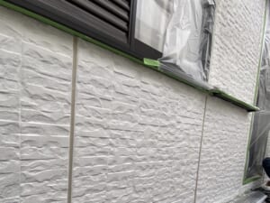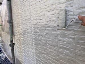 凹凸が多い外壁は平坦な素材に比べて塗りムラ・かすれが出やすいため、いつも以上に下地透け・塗料ダレ・ピンホール(気泡)などが起きないように注意して外壁を塗装を行っていきました。