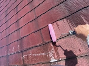 外壁面・屋根の中でも日当たりの良し悪しなどの影響で場所によって基材の傷み・劣化具合が異なります。仕上がりにムラができないように下塗り材の吸い込み加減などに考慮して作業を進めていきました。