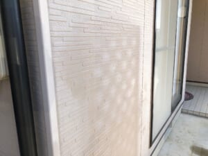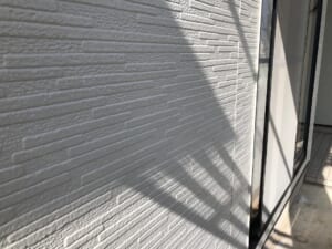 南面の外壁は色褪せが進んでおり、手前に置いていた木の柄が顕著に外壁に残ってしまっていました。塗りムラがでないようにローラーで丁寧に塗装しました。凸凹があるサイディング外壁でしたので、しっかりと浸透させるように気を遣いながら作業しました。