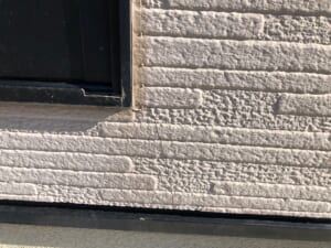 玄関柱のシーリング材も経年により劣化し、ひび割れがありました。劣化したシーリング材を撤去し、密着するようにプライマーを付着させます。サイディング部分を養生してからシーリング材を充填していきます。シーリングが外壁まではみ出したり、毛羽立ってしまわないように注意し丁寧に施工しました。