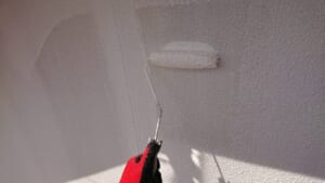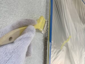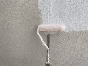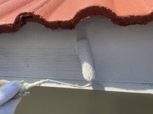 下塗り作業では細かい所までしっかりと塗り込みました。傷みが多い箇所はクラックに下塗り塗料がしっかりと入り込むように、塗りムラや塗り残しが無いか確認しながら作業をしています。窓廻りや樋裏など塗料が入りにくい箇所は、刷毛を使い丁寧に塗りこみました。