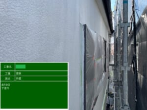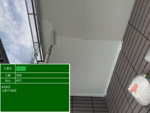 外壁中塗り、上塗りの工程は塗料の色が同じものを2度塗りすることになるので、塗り忘れが多くなります。塗り忘れがあると何年か経過した後に色褪せが激しく出てしまったり違いが出てしまいます。そのため塗料を塗った場所の確認を十分に行い作業を進めていきました。
