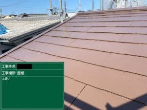 施工前は屋根の色褪せがかなり目立つ状態でした。屋根洗浄、下塗りから細かい所まで丁寧に塗装し、この工程が無駄にならないように上塗りも丁寧に塗料を塗布しました。また、色ムラができないように仕上げまでこだわりました。施工前と比較するととてもきれいになったと思います。