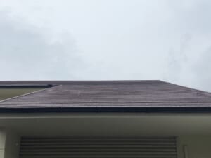お客様が特に気にされていたのが、屋根の色褪せでした。周りに建物が無く、国道沿いという事でかなり目立っていました。施工中は雨が続き屋根作業を中断せざるを得ない状況になりましたが、乾燥を確認した後に塗りムラに注意して作業を行いました。