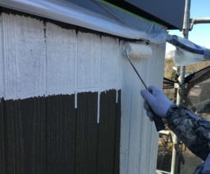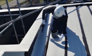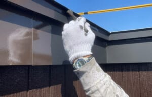 破風板は白サビによる傷みが大きかった箇所なので、特に丁寧に塗装を仕上げました。屋根防水塗装と同様、こちらも遠くから見ても目立たない箇所です。それでも手抜きをしない、丁寧な仕上がりになるよう大切に塗装しています。