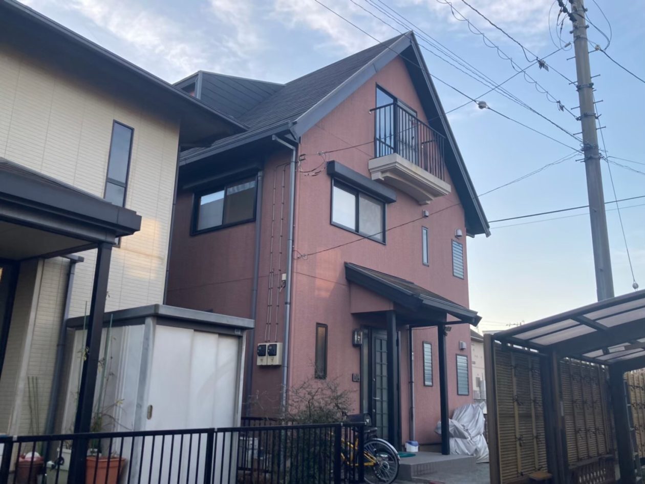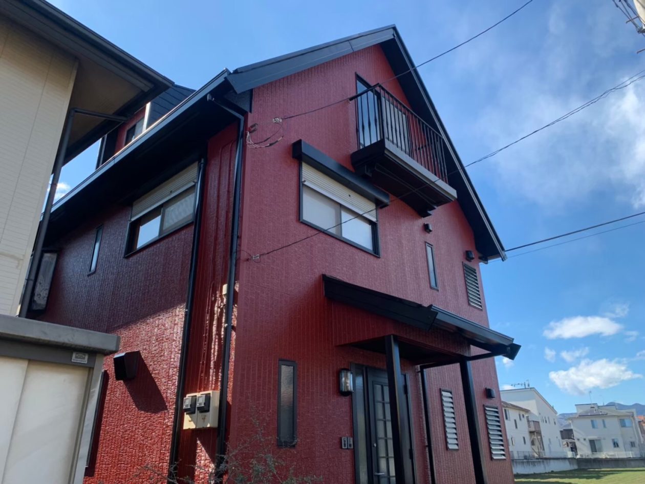 屋根の面積が大きいお住まいでした。屋根は一番傷みが早い 箇所なので、フッソ塗料で塗装をしました。夏場の暑さが気に なっていたので、遮熱塗料を使用。屋根の勾配が大きく、外を歩いていても年数なりの傷み・色あせが見える状態でした。ネオブラックで塗装をしたことで、黒の引き締まった仕上がりになっています。