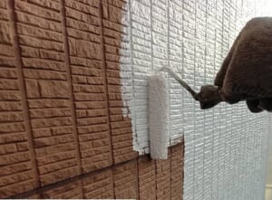 築20年ということもあり、変退色等経年劣化がお見受けしました。下地調整の意味も込めて、十分に下塗り塗料を外壁に浸透させました。中塗り・上塗りを塗装する前のかなり重要なポイントになってくるので、丁寧に作業しました。下塗り完了後は真っ白でムラのない仕上がりになっています。
