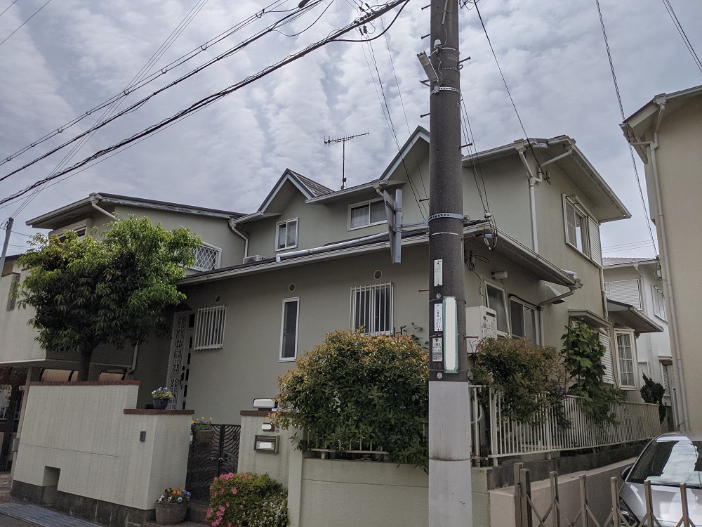 下塗りが曖昧だと建材と塗装の密着が弱く、塗膜がいずれ剥がれる可能性があります。細部までもれなく塗布する為に、下塗りにはローラーだけでなく刷毛も活用しながら手間をかけて下地塗料を外壁にしっかり浸透させていくことを意識して作業を行いました。