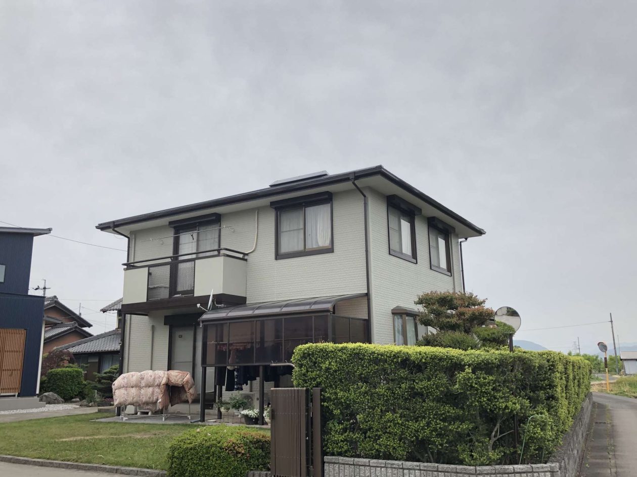 窓廻りは雨漏りの原因になりやすい部分なので、しっかり上からシーリングを増し打ちをしました。堅目地の部分は古い割れているシーリングを撤去して、接着剤の役割のプライマーを入れ、新しくシーリングを入れました。今回のシーリングは外壁のペンキを塗ってからする、後打ちになるので隙間ができないように丁寧に作業しました。