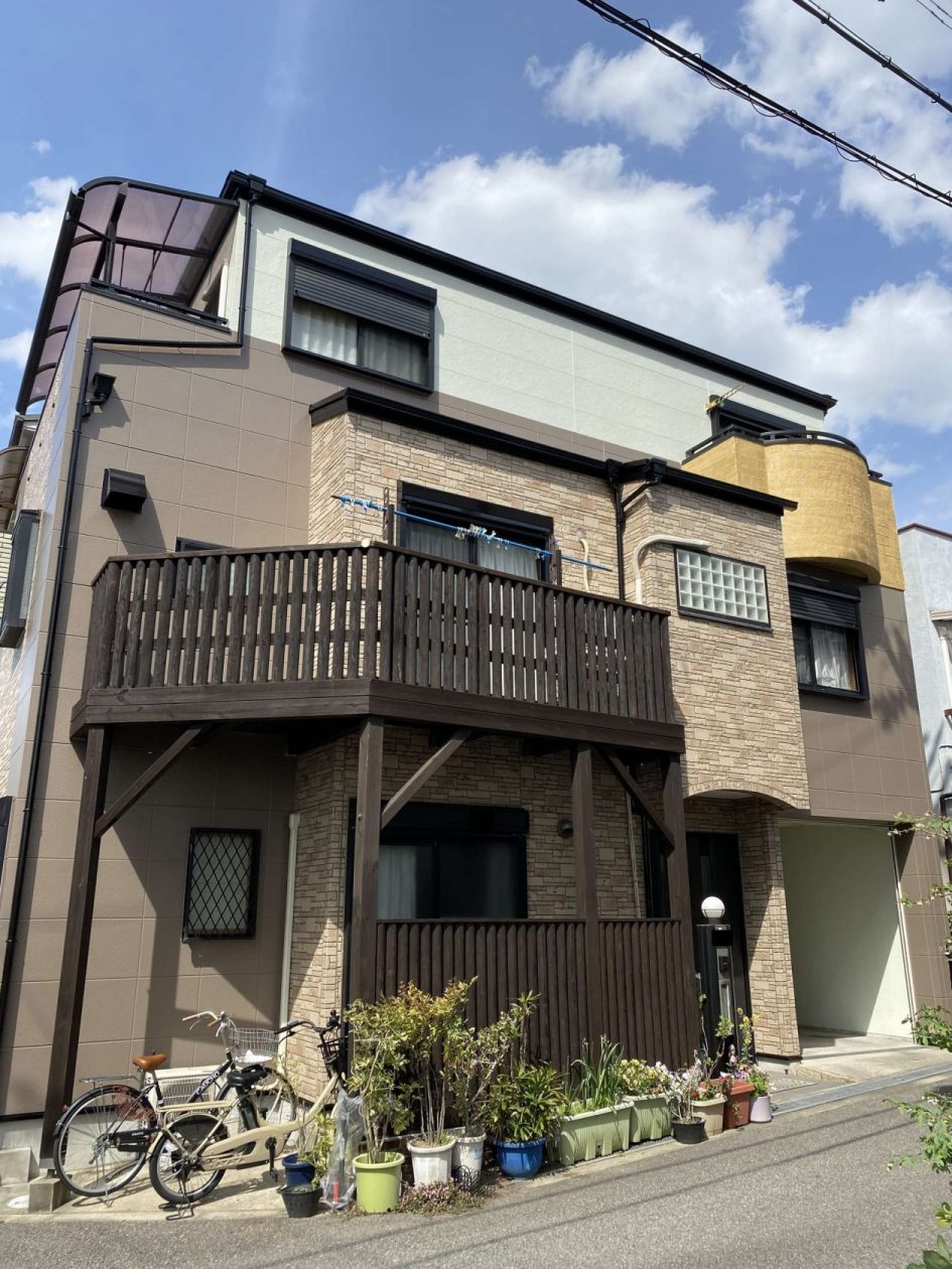 既存のサイディングの模様を活かし、艶を出すクリアー工法を施工しました。クリアー工法をする外壁も、凹凸や溝が深い外壁だったので、ムラができないように注意しながら塗布しました。艶が綺麗に出てピカピカの外壁に生まれ変わりました。