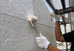 外壁が、凹凸のあるサイディングボードだったので、塗料が溜まり下塗り材がムラにならない様に注意しました。下塗りをしっかりと行う事で仕上がりが変わるので、ハケも使い綺麗に塗布していきました。中塗り・上塗りも同様に、塗料溜まりには注意しました。