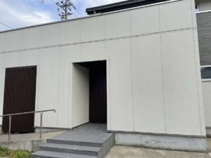 塗膜剥離の症状が出ていた玄関周りの外壁は、より傷みに浸透して再発を防ぐ為に下塗りを丁寧に行いました。膜厚をつけるように意識することで、より丈夫に仕上がったと思います。築7年という年数で早めの外壁塗装ができたからこそ、これから長く安心して住んでいただけるように工夫しました。