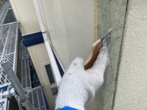 (下地補修作業)仕上がりをイメージしながら、補修しました