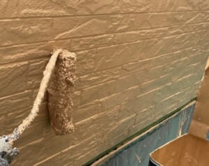 現状のコーキングに劣化があり、一部コーキングが無くなっている所もありました。劣化が激しく、水が廻ってしまいそうな箇所もあった為、シール材を打ち替えるだけではなく、バックアップ材を入れて打ち替え作業をしました。バックアップ材とはシーリング材を充填する深さを調節する為のものです。バックアップ材を入れることで、耐水性が強化され、雨漏れや劣化に強い目地を作ることができました。