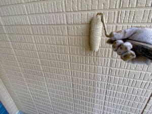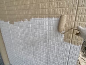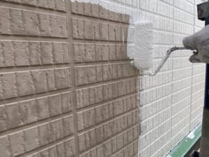 中塗り・上塗りは美観性は勿論のこと、外壁に防カビや防水性、遮熱性など様々な効用を持たせる作業でもあります。特に凸凹の多いタイル調のパネルボードのお住まいだったので、かすれや色ムラが出ないように注意しました。また、同じ塗料で二度塗りを行うため、塗り残しや塗り忘れがないかにも気を遣いました。