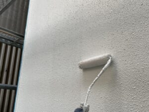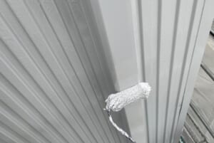 リシン面の上塗り塗料は、艶消し塗料でした。艶消し塗料は塗り重ねると、どうしても底ツヤ(薄っすらと出てくる自然の艶)が出てしまうので、通常よりも1回多く外壁上塗りをして、艶ムラが出ないように意識しながら作業しました。