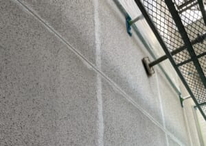 外壁リシン面のコーキングを撤去したので、パターン補修をする事になりました。パターン補修とは、壁の模様に合わせた補修の事です。今回のリシンのような凹凸のある外壁では、補修をきちんと行わないとコーキングの跡が残り仕上がりが悪くなります。補修跡が極力出ないように注意して補修を行いました。