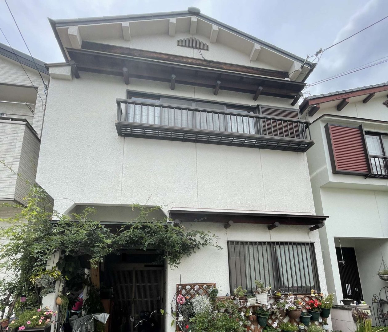 外壁のクラック(亀裂・ひび割れ)が多くありました。クラックを補修せずに外壁塗装をするとクラックの部分から雨水が入り、雨漏れの原因になったり、建物自体の耐久性が失われる可能性があります。その為、外壁塗装前にはクラック補修に時間をかけ、入念に行います。