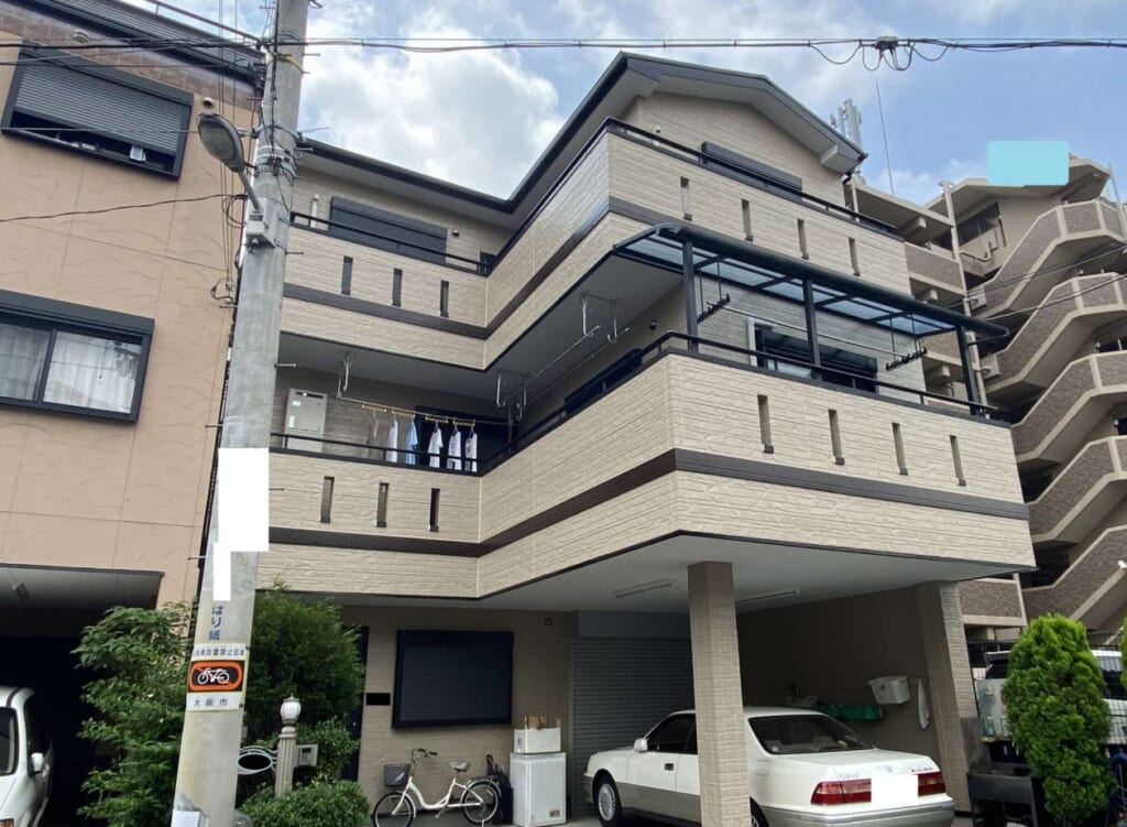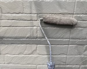 外壁下塗り、中塗りでせっかく仕上げた下地が台無しにならない為にも、塗りムラが出ないように外壁上塗りの工程ではハケを使いながら慎重に行ないました。しっかりチェックしながら作業を進める事も怠りませんでした。
