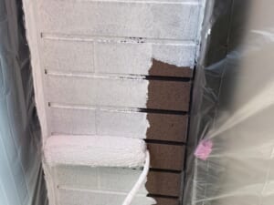 現状が傷みが大きかった箇所の為、より丁寧に作業を進めました。ボードを上塗りまで施工した後でのシール作業の為、はみ出し等あると目立ってしまいますのでシール作業の各工程を丁寧に進めてきれいな仕上がりになるように注意して実施しました。また、今回のお住まいは撤去前の既存のシールが”硬化不良”(シールがうまく乾燥しきらず、ネバネバしている状態)を起こしていたので、シールの撤去にはかなりの時間がかかりました。