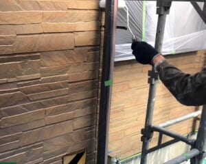 クリアー塗装は無色透明でツヤがありますが、塗り残しがないかが要注意になります。1回目の塗装においては、外壁の塗装箇所と既に塗装済みの箇所との区別はつきやすいですが、重要なのは2回目です。今回の外壁は凹凸がある外壁デザインなので、細かな点まで2層分の塗料を刷毛、ローラーを用いて塗装していきました。1回目の塗装では外壁に塗料が染み込む分、ツヤは出にくいですが、2回目の塗装でしっかりツヤ出しをする点がクリアー塗装ではとても重要ポイントです。