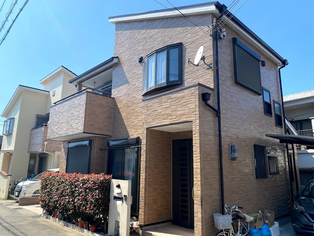 クリアー塗装でのコーキング作業は、無色透明な塗装の為、シール材の色が目立ちます。既存の古いシール材と近似色のシール材を用意し、全体的な色のバランスを図る必要があります。そのためシール材の色選びがとても重要になってきますので、何度もテストしながら選びました。シール打ちに関しては、外壁の凹凸に合わせてしっかりゆっくり丁寧にヘラで慣らしていく作業がとても神経を使いました。