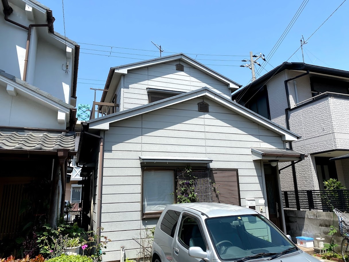 経年劣化により屋根板金部分の釘が浮いている箇所が複数ありました。下塗り作業に入る前に全てチェックして釘の修正作業を実施しました。塗装工事をする機会にしっかりと確認していないと後に雨漏りの原因にもつながりますので、より丁寧に確認を行いました。下地の補修がしっかり出来ていないと、どんなに良い下塗り材を塗布してもすぐに傷んでしまうので、塗装前の下準備からとても重要な作業になります。
