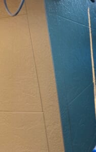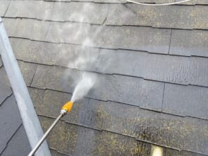高圧洗浄はきれいな仕上がりのためにも大切な工程の一つです。外壁表面のコケやゴミをしっかり除去し、汚れをきれいに落としました。そうすることで下塗り塗料と建材の密着を強くすることができます。きれいな状態を長く保つための大事な下準備です。