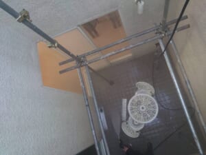 今回のお住まいの構造上内壁があったのですが、内壁も塗装していく必要があるためその個所もしっかりと高圧洗浄させて頂きました。築年数が経っているお住まいの為、しっかりと塗料を塗布することが特に重要になります、そのため高圧洗浄は非常に重要な工程です。