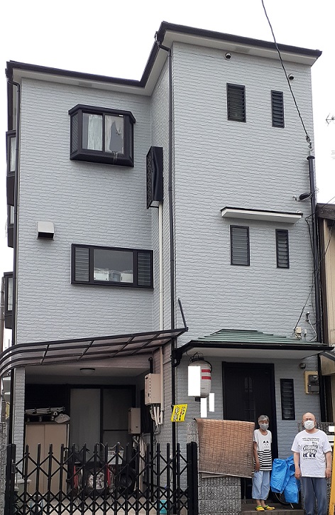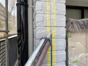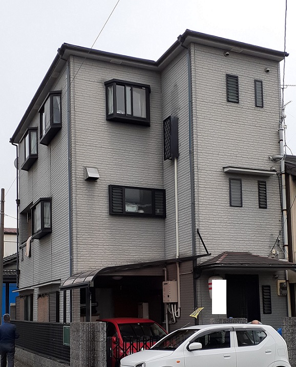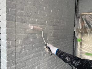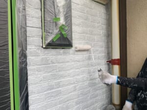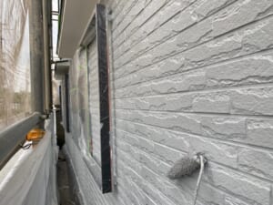 屋根と同様に築年数から下塗りの作業を行う際に塗料の吸い込みが激しかった為、念入りに下塗り作業を行うことにより、中塗り・上塗りの外壁塗料が残るように注意いたしました。また、艶感がしっかり残るように乾燥時間など各工程の事前にシュミレーションし、作業を円滑に行えるよう準備をいたしました。