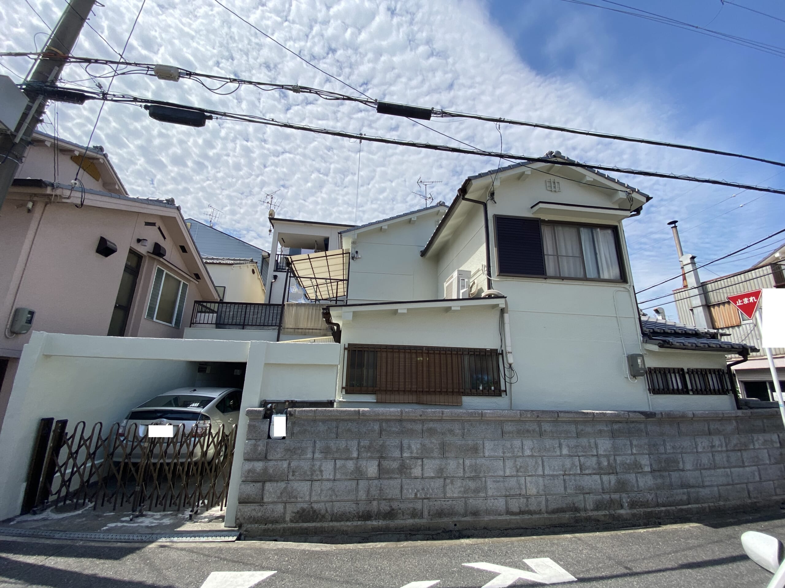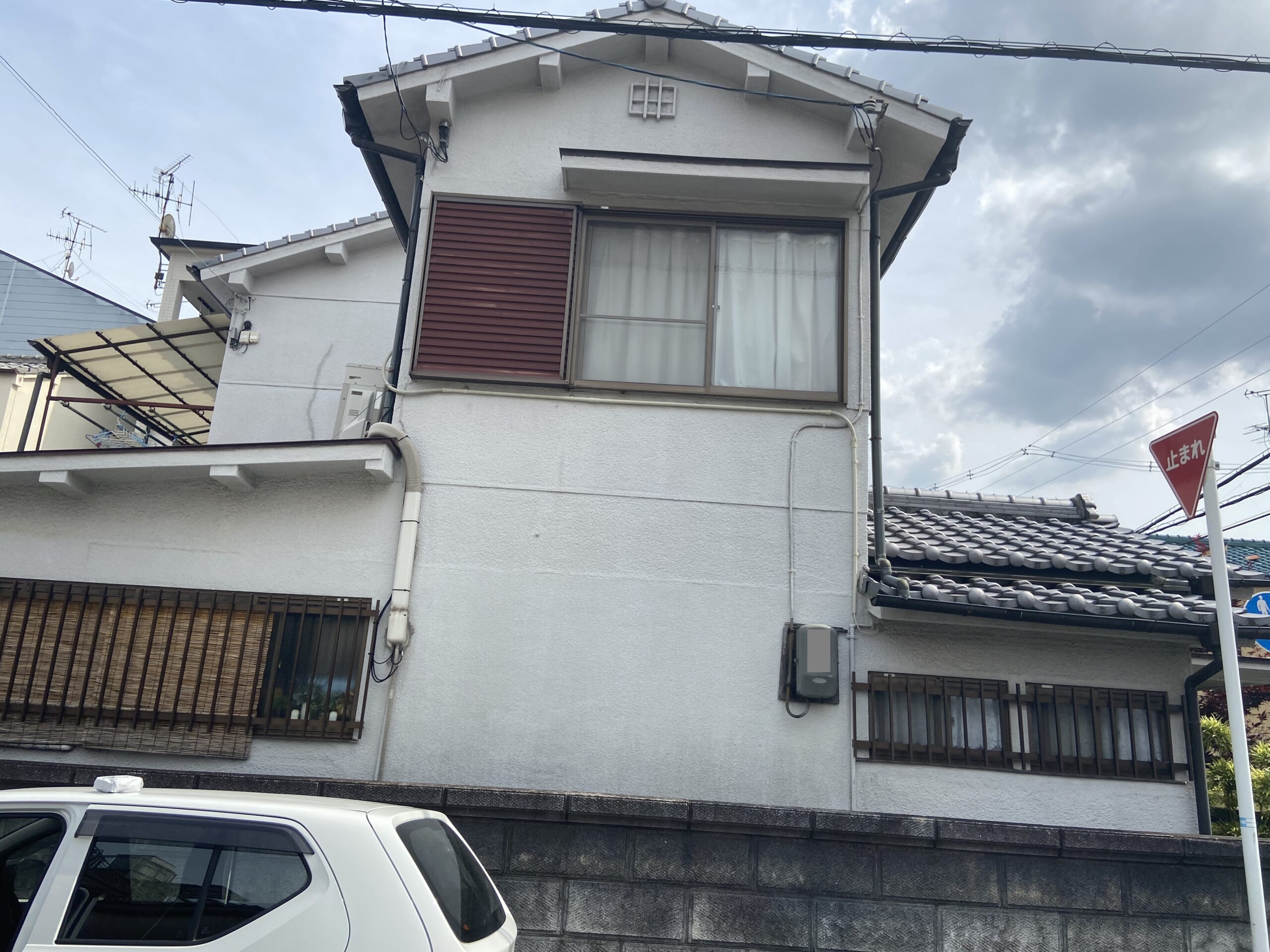 大阪府東大阪市、築40年のお住まい。前回塗装から10年ほど経ち、またいつかはしないといけないと思っていたとのことです。前回塗装後、外壁一部に膨れがあったこと、また大阪北部地震時に外壁側面に亀裂が入ったことを気にされていました。ベランダにも亀裂が入っており、自身で補修をされていましたが、やはりプロに任せたほうが安心だということで今回の外壁塗装工事を任せて頂ける事になりました。