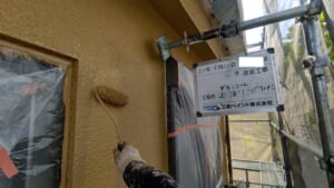 今回使用した塗料は、耐候性・耐久性に優れた塗膜性能を発揮するウレタン塗料です。また、防カビ・防藻性もある為、汚れにも強い塗料となっています。塗料の機能を発揮させる為にも、塗布する際は塗り残しや塗りムラが無い様に慎重に塗布しました。