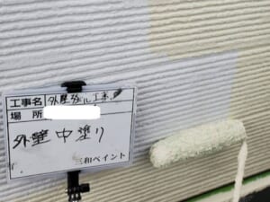 施工詳細③(外壁中塗り・上塗り作業)境界部のライン出しもより丁寧に