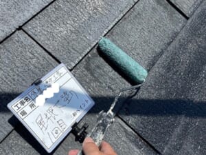 施工詳細②(屋根塗装作業)上塗り塗料が密着する様に