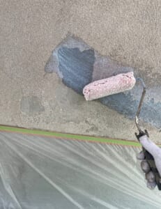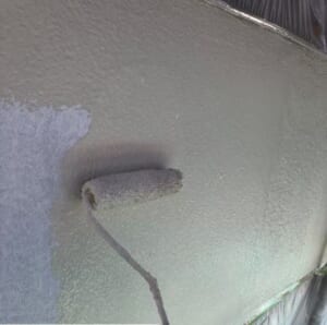 前回の塗装工事からある程度年数が経過していたこともあり、通常の下塗り材を使用すると後に剥離等に繋がってくる可能性がありました。ですので前回の塗装がはがれないように下塗り材に骨材用の水性クラフトという塗料を使用し、丁寧に施工しました。