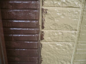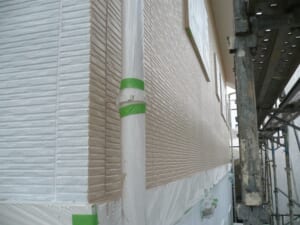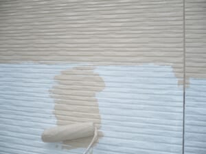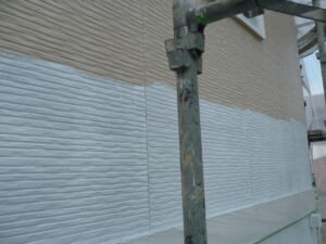 全体的に色褪せが進んだサイディングボード外壁でしたが、特に陽の当たる南面やベランダ部分の色褪せが進んでいて、下塗り材の吸い込みがかなり多かったです。塗りムラ防止の為、通常よりも多く時間をかけて下塗りを行いました。
