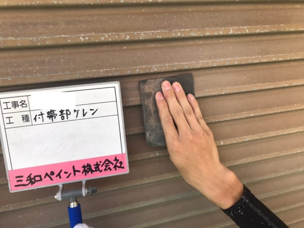 雨戸、戸袋共に、しっかりケレン作業を行いました。ケレンは、専用のペーパーを使い、錆びている部分などを削り綺麗にする作業の事です。ケレンをしっかり行ってから付帯塗装を行ったので、ツヤもしっかり出ました。