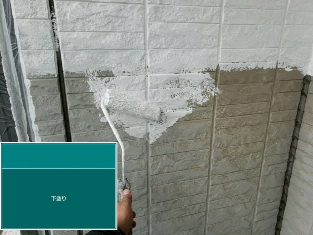 サイディングボード外壁を使用していたため、高圧洗浄をする際に汚れが残らないよう入念に洗浄作業を行いました。その後は、塗りムラが出ないよう細かい所までしっかりと確認をしながら丁寧に下塗り作業を進めていきました。
