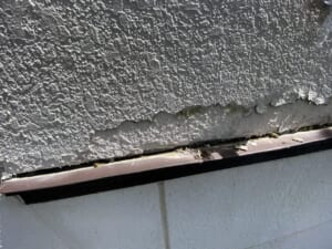 窓廻りや換気廻りが水を吸って膨らみ、欠損を起こしていました。外壁材のALCは塗装の防水機能が無くなると傷みが早いですが、張替えしなくても修復可能な優秀な建材です。そのため、抉ったような凹みのある外壁もパテで平滑に埋め、表面の柄を再現したことで、傷みがあったこともわからない下地補修ができました。