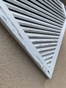 屋根・壁の塗装をするにあたり、お客様が気にされていたのは換気とデザインを兼ね備えた木製ガラリの塗装。水を吸ってささくれが出ている箇所をやすりで滑らかにし、細かい部分も手作業で丁寧に行ったことで新品同様に仕上げました。
